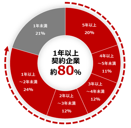 また、現契約企業のうち20%のお客様には5年以上継続してご利用いただいています。
