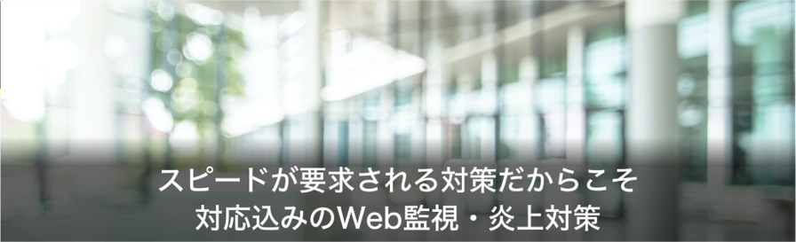 他社のWeb監視サービスでは「検索・監視→報告」までで、有事の際の対策は追加費用がかかると言われるケースがほとん どでした。その場合、対策をしてもらう必要がでてくると、追加見積もり、社内での追加承認、申込みという手続きが発生 します。しかしそんなことをしていると、どんどん対応が遅れていきます。